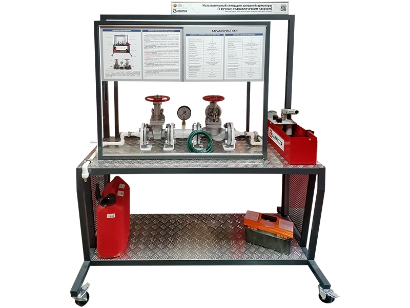 Испытательный стенд для запорной арматуры (с ручным гидравлическим насосом) (далее - стенд) предназначен для отработки практических навыков проведения гидростатических испытаний запорной арматуры с применением ручного гидравлического насоса.