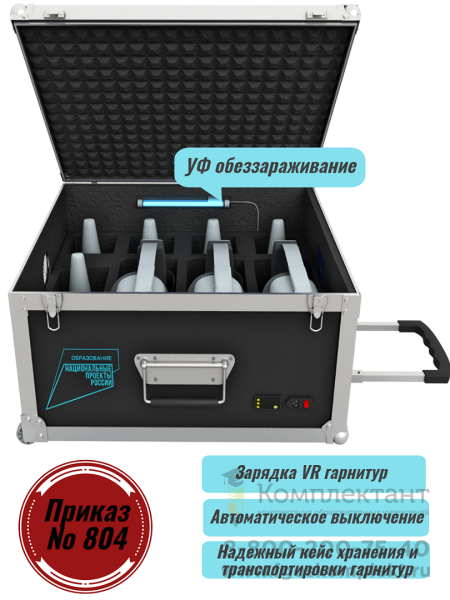 Система хранения и заряда оборудования с функцией ультрафиолетовой обработки шлемов виртуальной реальности представляет собой уникальный антивандальный кейс.
