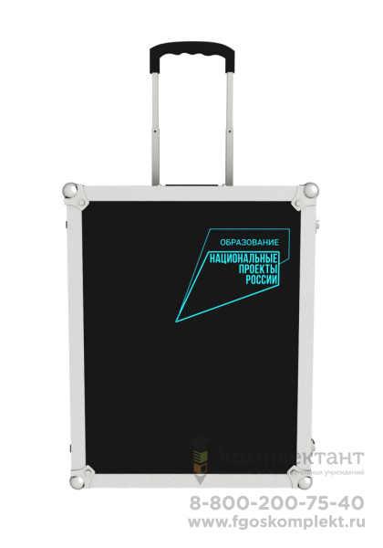 - Выдвижная ручка с кнопкой-фиксатором для транспортировки. Металлические ручки на боковых сторонах кейса.